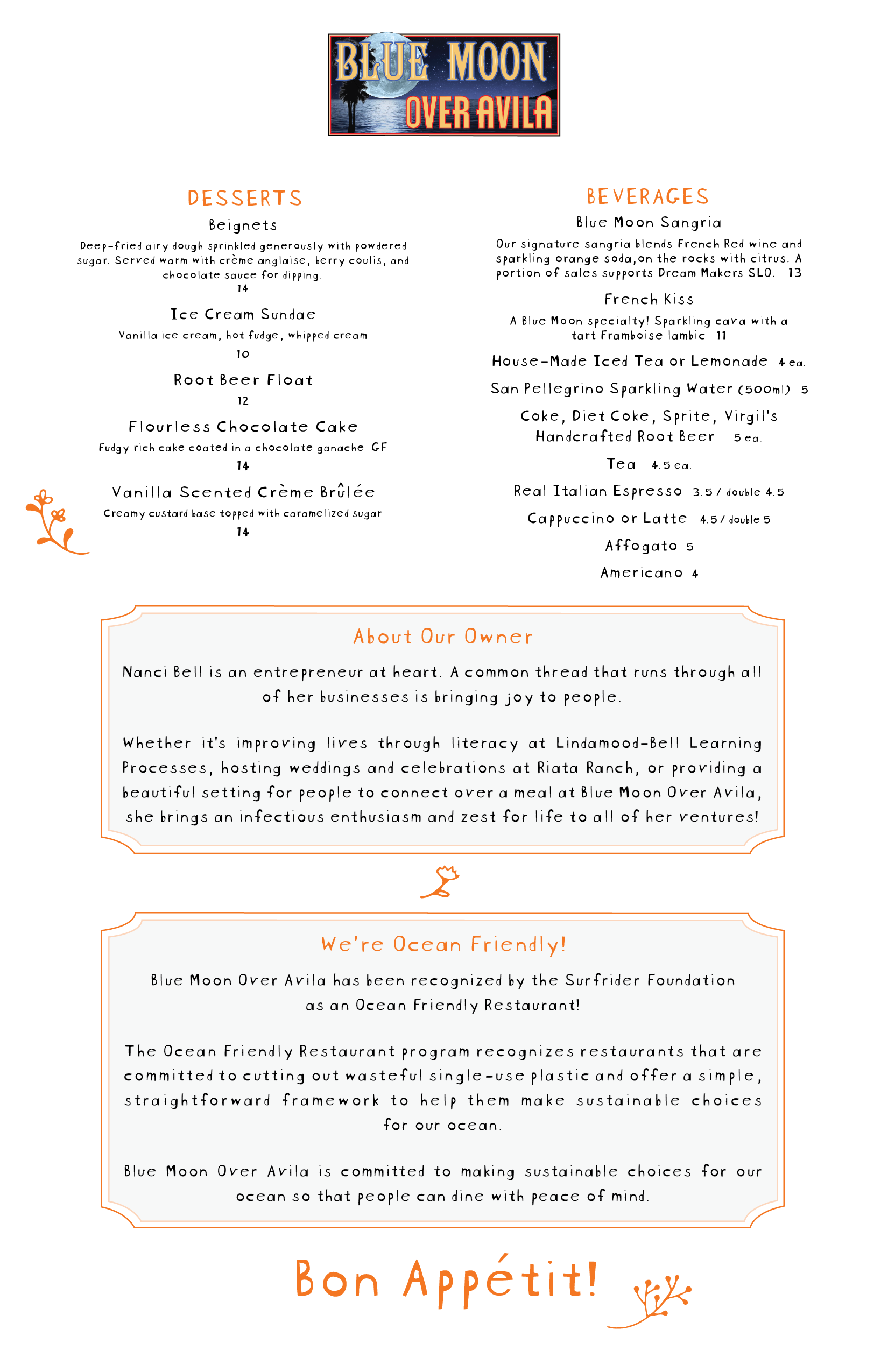 460 Front Street  –  Avila Beach, CA  –  (805) 595-2583  –  BlueMoonOverAvila@gmail.com